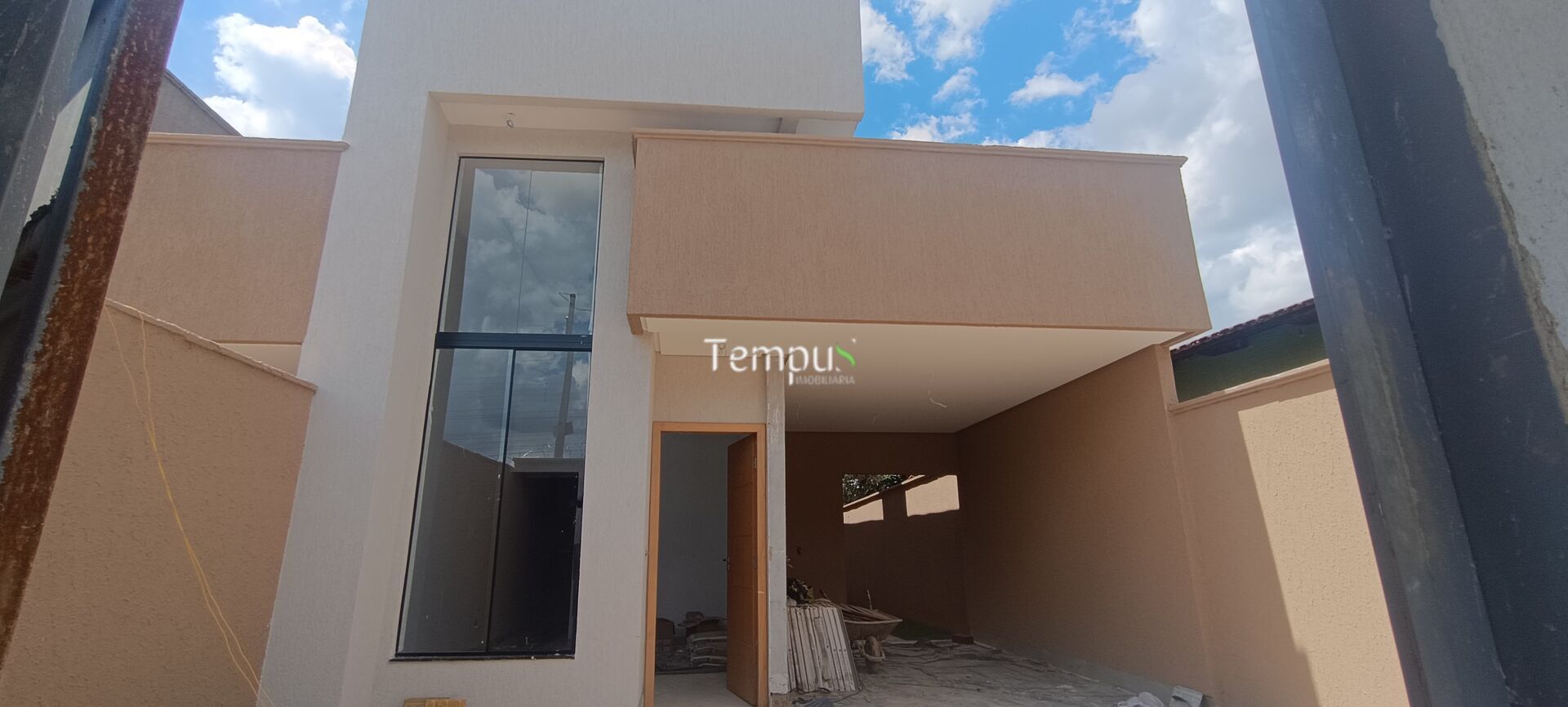- Sala na frente da casa com pé-direito duplo, proporcionando mais amplitude e iluminação natural